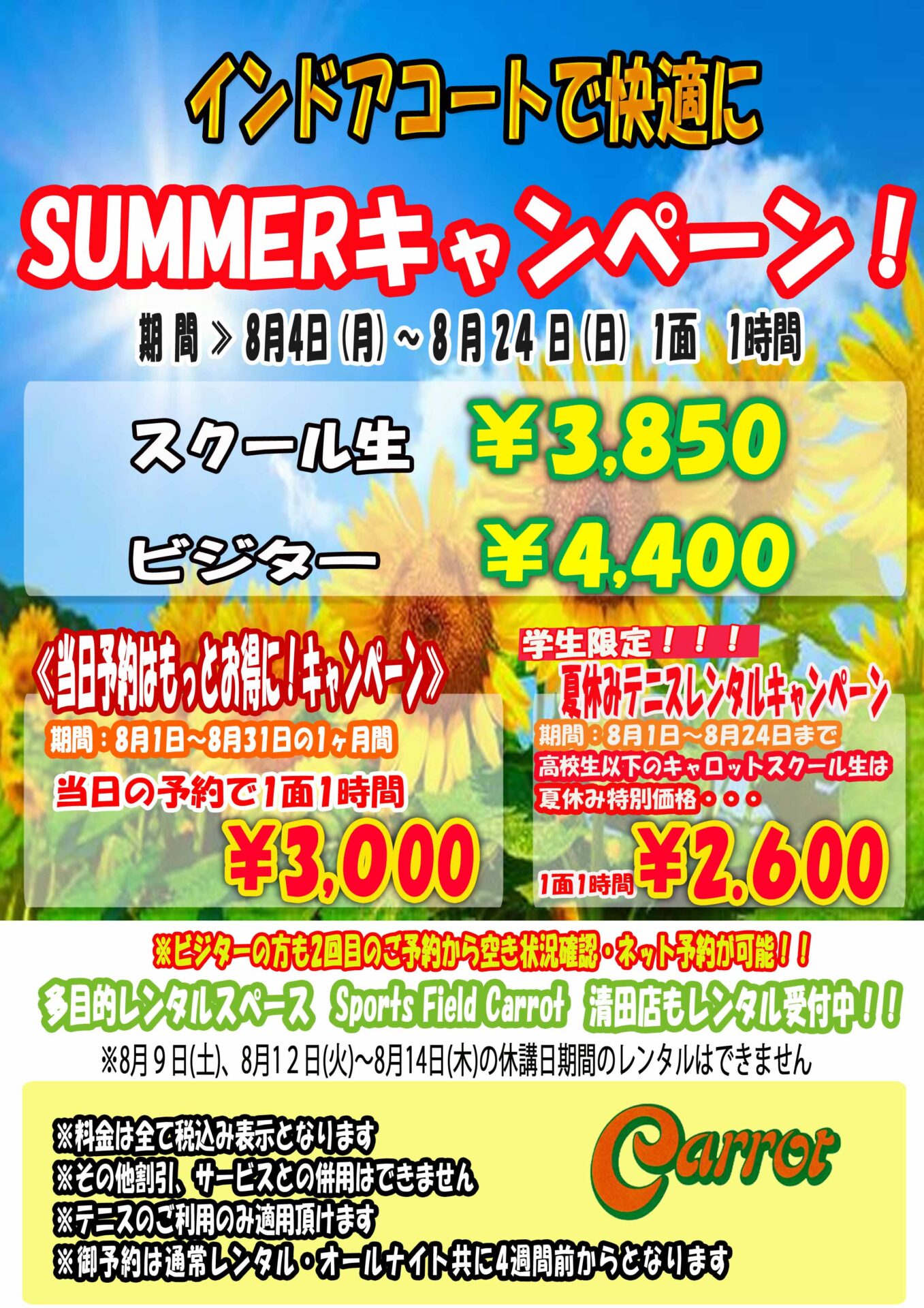 学生限定※高校生以下のキャロットスクール生夏休み特別価格!!